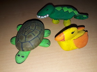 Diese ganz besonderen Steine werden sorgfältig ausgewählt. Oftmals sieht man auf den ersten Blick, was für ein Tier aus einer bestimmten Steinform werden kann. Folgt einfach eurer Fantasie. Dann geht es an die Pinsel und damit in die buntesten Farben. Ihr werdet staunen, wie aus langweiligen grauen Steinen ein buntes Fest für die Augen wird.
