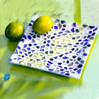 Mit Mosaik- und Muggelsteinen lassen sich wunderschöne Deko-, aber auch Nutzteile basteln. Wir verwandeln heute einen quadratischen Glas-Teller in eine höchst dekorative Bonbonschale. Da ist es doch fast zu schade, wenn Bonbons das hübsche Muster zudecken. Nun dagegen hilft nur, gemeinsam die Süßigkeiten zu vernichten, damit das Dekor wieder im Ganzen sichtbar wird.